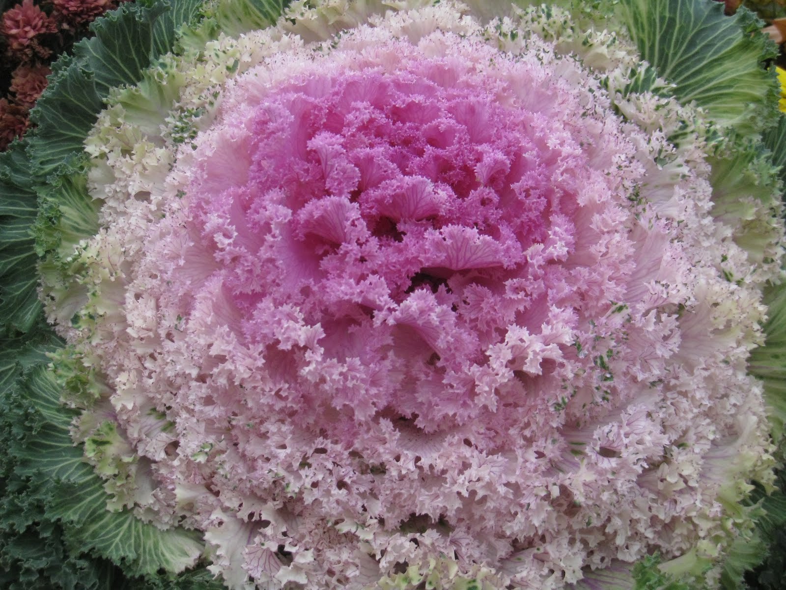 The texture of the leaves is pleasing, a sort of three-dimensional fractal which grows increasingly curvy as it approaches its edges, and the smoothly transitioning color of green to (unexpected) pink.